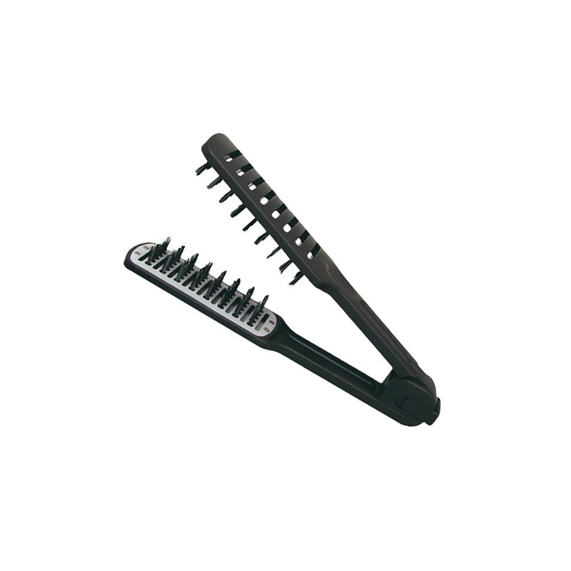 Cepillo Plancha Eurostil con puas de Jabali. Su cuerpo con ranuras permite utilizarlo con secador. Tambien como guia en uso con plancha facilitando el trabajo. Con bloqueo de apertura de la pinza.
