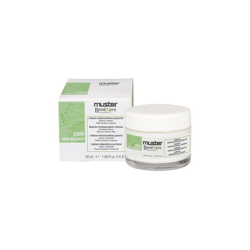 Crema Sebo-normalizante de Acción Calmante para Pieles grasas e impuras con Extractos de Bardana, Equinácea, Tomillo y Complejo de aminoácidos sulfurados. Ayuda a normalizar la producción de sebo en su origen para un efecto mate y reducir las impurezas de puntos negros y comedones. La piel se hidrata y matifica inmediatamente, reduciendo el efecto de piel grasa y brillante. Envase 50 ml.