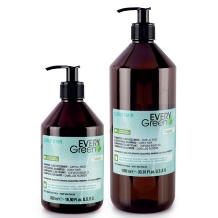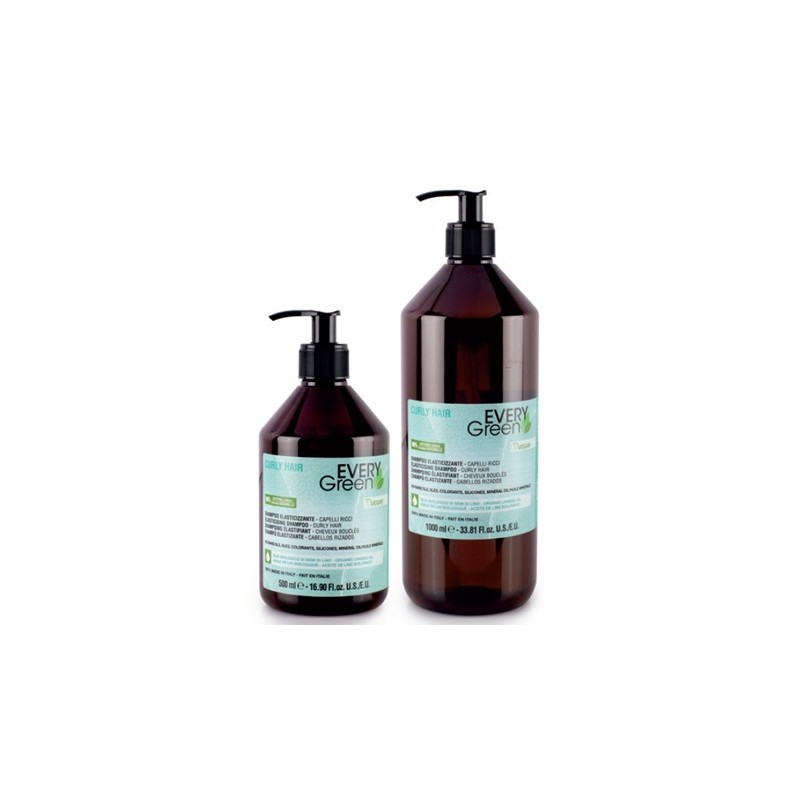 Champu EveryGreen Elastizante ideal para lavar adecuadamente el cabello rizado. Gracias a su formula se consiguen rizos suaves, elasticos, disciplinados y brillantes. Con extracto de Algas Marinas, rico en sorbitol y polisacaridos y Aceite de Camelia que aporta hidratacion y brillo. Sin SLS, SLES, Aceites Minerales, ni Siliconas. Envase de 500 ml y 1.000 ml.