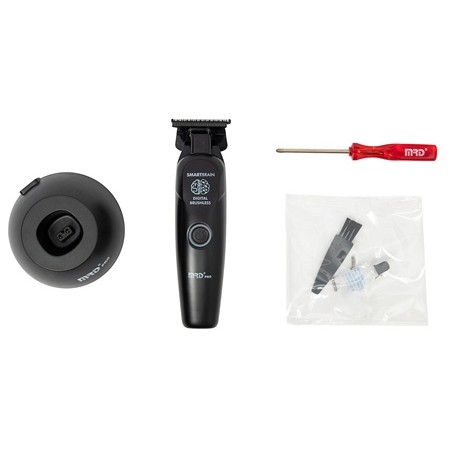 Maquina trimmer con motor magnetico rapido y fuerte con 7.200 Rpm. Bateria de Litio profesional de larga duracion y capacidad de 1500mAh. Tiempo de carga 70 minutos, tiempo de funcionamiento 110 minutos. Uso inhalambrico o a cable. Cuchillas de acero inoxidable japones 440C (Dureza Rockwell 62-63). Longitud de corte ajustable de 0-1 mm. Incluye base, cargador con cable flexible de 3 metros, cepillo de limpieza y botella de aceite. Peso 165 gr. Color negro. REGALO Spray Cool Shot Steinhart.