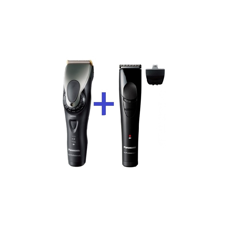 Lote Panasonic Maquina Corte ER-HGP86 + Trimmer ER-GP22-K. Maquina de corte con apurado a 0,3 mm con ajuste de cuchilla hasta 1,5 mm y accesorio de corte degradado para obtener un corte degradado entre 1,5 y 2,7 mm con intervalos de 0,3 mm. Incluye peine de 1,5mm, 3/4 , 6/9 , 12/15 mm, Base carga. Cuchilla con revestimiento de Carbono y dientes en angulo de 45º para un corte preciso y suave. Maquina trimmer Panasonic. Con cuchilla para los contornos + cuchilla para realizar rapidamente dibujos. Cuchilla con 0,3mm de longitud de corte. Vibracion reducida. Diseño ergonomico, facil de sostener. Carga de bateria 8 horas con hasta 40 minutos de uso. Comodo soporte de recarga. 2 Peines de 3 y 6 mm.