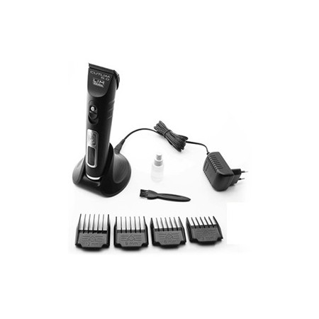Maquina de Corte profesional Lim de 7.000 Rpm de uso intenso. Con ajuste de corte a 0,8 - 1,2 - 1,6 - 2,0 mm. Cuchilla fija de Acero al Carbono y cuchilla movil de Ceramica Negra. Uso a bateria y con cable. Bateria de Li Ion con carga de 3 horas y 240 minutos de uso. 4 Peines de 3, 6, 9 y 12 mm. Base de carga, aceite y cepillo limpieza.