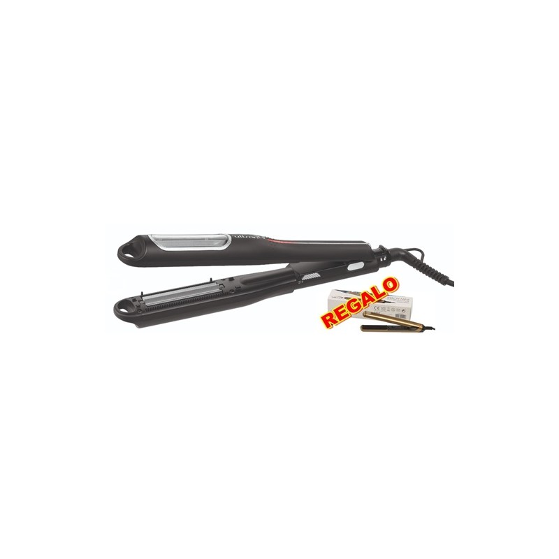 Plancha de frisado Automatico. Reduce significativamente el tiempo empleado en los trabajos de Styling. Consigue volumen y looks rapidamente. 2 Rodillos marcados que giran automaticamente al cerrar la plancha sobre el cabello. Con 2 temperaturas (170 ºC y 210 ºC) para diferentes tipos de cabello. Con bloqueo para guardarla facilmente. Cable giratorio. Indicador luminoso. REGALO Plancha Viaje Ultron.