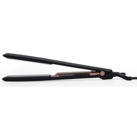 Plancha Corioliss con placas de Titanio de 11,5 cm extralisas para un deslizamiento sin esfuerzo. Control de temperatura integrado, ideal para todo tipo de cabello. Calentador ceramico interno ultra-rapido. Voltaje Dual. Temperatura variable de 135 a 235 ºC. Diseño ergonomico, cable giratorio de 3 metros. Incluye estuche y protector dedos.